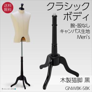 クラシックボディ キャンバス張マネキン 上半身トルソー 木製猫脚 黒半艶 メンズ ピンワーク可 腕なし 股なし GNW8K-S8K