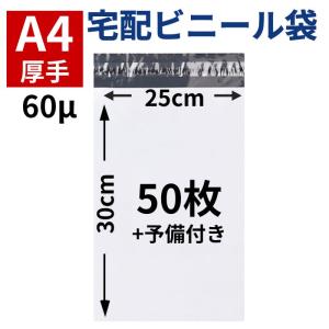 宅配ビニール袋 宅配袋 宅配ポリ袋 A4 50枚 テープ付き 厚手 60ミクロン 軽量 梱包用資材 服 防水 お試し フリマ