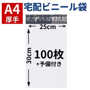 宅配ビニール袋 宅配袋 宅配ポリ袋 A4 100枚 厚手 テープ付き 大きめ 梱包用資材 服 防水
