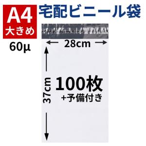 宅配ビニール袋 宅配袋 宅配ポリ袋 A4 100枚 テープ付き 60ミクロン 厚手 マット 大きめ 軽量 梱包資材 防水