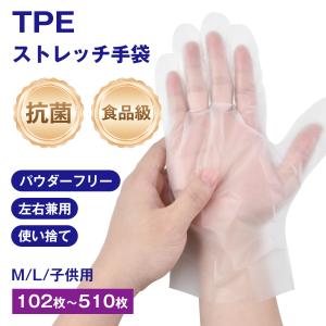 TPE ストレッチ手袋 プラスチック手袋 エラストマー 手袋 M/L/子供用サイズ 抗菌加工 食品衛生法適合 食品加工 使い捨て パウダーフリー