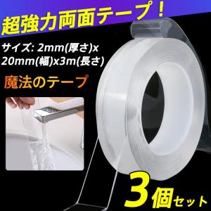 両面テープ 3個セット 強力 透明 魔法のテープ 車用 3メートル 多用途 防水 屋外 固定 張替え 厚手 便利グッズ ファッション 防災