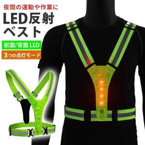 安全ベスト 高輝度 LED 点灯 点滅 可能 反射 ストラップ 蛍光 夜間 防犯 パトロール ウォーキング 散歩 アウトドア ジョギング サイクリング 工事現場 爆買