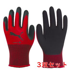 【サイズ:XL】 3双セット プーマ 作業用手袋 背抜き手袋 PUMA WORK GLOVES 天然ゴムコーティング手袋 レーシング PG-1350 レッド