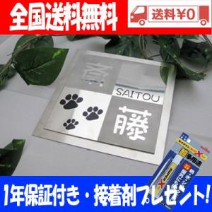 表札 ステンレス表札 オシャレな黒文字表札 肉球モチーフが可愛い!! 犬 猫