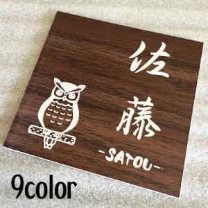 表札 おしゃれ 戸建て ふくろう アクリル 梟 フクロウ 玄関 看板 正方形 縁起 風水