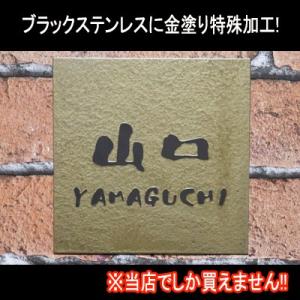 表札 戸建 おしゃれ ブラックステンレス 金色特殊加工表札 150mmx150m 送料無料 特殊加工で他店では買えません