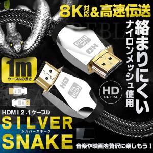 HDR HDMI 2.1 ケーブル シルバースネーク 1m 映像 音声 ナイロンメッシュ 8K HD 高速伝送 3D HDR コンポ