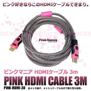 ピンクマニア HDMI ケーブル 金メッキ 端子 1920X1080 10Gbps 1080i 1080 メッシュ 被膜 3m