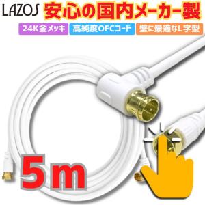 LAZOS アンテナケーブル 5m 4K 8K対応 S-4C-FB規格 高品質 低減衰 同軸ケーブル 地デジ BS CS 衛星放送 L字型 ネジ式コネクタ 金メッキプラグ 新居 引っ越し