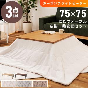 こたつセット こたつテーブル こたつ布団 掛け布団 敷き布団 幅75 正方形 フラットヒーター 手元コントローラー 木目 オールシーズン 温度調節 編み込み ラグ