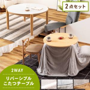 こたつセット 円形 80cm 2WAY 天板リバーシブル 石英管 こたつテーブル こたつデスク こたつ布団 掛け布団 丸 センターテーブル 省スペース 継脚 高さ調節 机