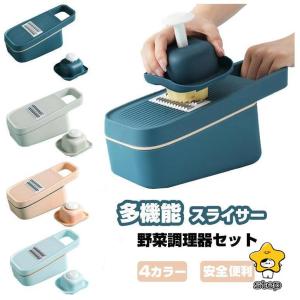 野菜調理器 スライサー 野菜カッター 安全ホルダー 多種の刃付 多機能 千切り 花形切り 安全ホルダー キッチン 調理器具 スライサー セット 洗える 4枚刃