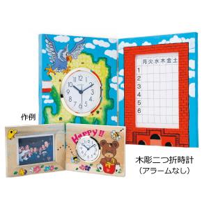 木彫二つ折時計セット はめ込み式 クオーツ時計付 記念 制作 子供 卒業 工作 クロック