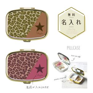 オリジナルネーム ピルケース アクセサリーケース ヒョウ柄 星 レオパード スター 動物 ピンク 名前入り