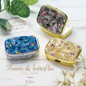 ピルケース アクセサリーケース アイラッシュケース ミラー付き 花柄 花 ナチュラル ボタニカル リーフ レトロ 蝶々