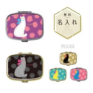 ピルケース アクセサリーケース アイラッシュケース 名入れ ミラー付き おすましねこ アニマル 水玉 名前入り
