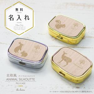 ピルケース アクセサリーケース アイラッシュケース 名入れ ミラー付き 木目 シルエット 動物 リス ウサギ シカ 名前入り