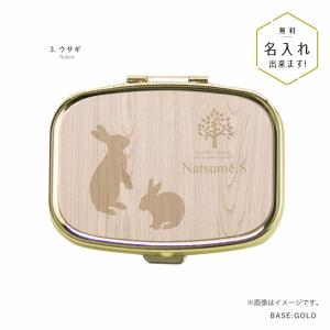 オリジナルネーム ピルケース アクセサリーケース 木目 シルエット 動物 ウサギ 名前入り
