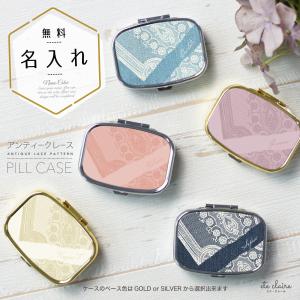 ピルケース アクセサリーケース アイラッシュケース 名入れ ミラー付き アンティーク レース 名前入り