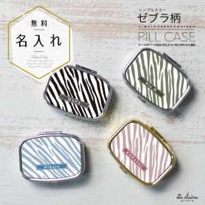ピルケース アクセサリーケース アイラッシュケース 名入れ ミラー付き ゼブラ柄 シンプル 名前入り
