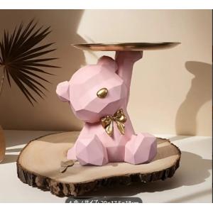 クマの形をした収納用彫刻卓上の装飾品(ピンク)