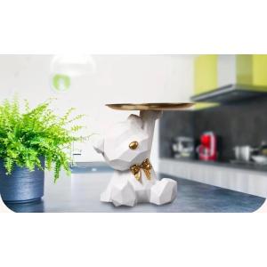 クマの形をした収納用彫刻卓上の装飾品(白)