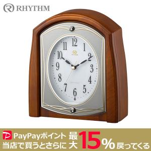 RHYTHM 電波クロック 木枠 スワロフスキー留め飾り リズム ハイグレードクロック 置時計