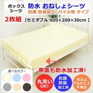 防水シーツ ボックスシーツ (抗菌 防臭) おねしょシーツ (セミダブル 2枚組) パイル地 ベッド マットレス用 BOXシーツ ボックスタイプ