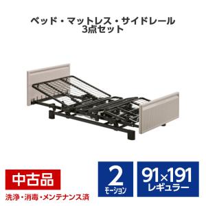 【中古】プラッツ ミオレットIII 2モーター 木製フラットボード P113-22DA ベッドサイドレール 2本 TS-SKT-A3R マットレス 電動ベッド 【代引き不可】