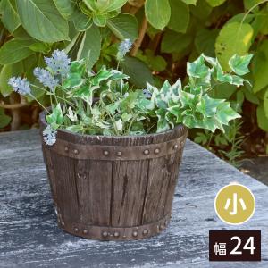 本物そっくり 腐らない FRP製 植木鉢 小 直径24cm 強化プラスチック バレル型 プランター 軽量 穴付き おしゃれ 丸型 樽型 擬木