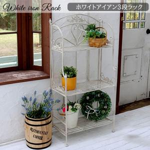 アンティーク調 アイアン ガーデンラック 3段 おしゃれ 屋外 白 シャビ―シック ホワイト プランターラック 棚