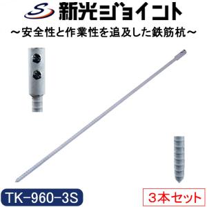 防獣フェンス用の鉄筋杭 延長材を差し込む2段式 D16×全長960mm(打込み代890mm)脚立・立馬必要なし【TK-960-3S】3本セット