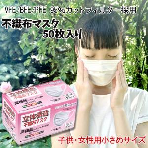 マスク 不織布 子供用 女性用 小さめマスク 不織布マスク 50枚 10枚ずつ個包装 3層構造 不織布 使い捨て 白 ウイルス 花粉 ハウスダスト