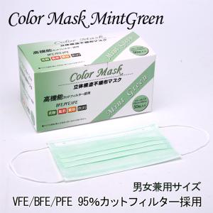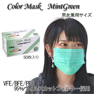 カラーマスク ミントグリーン レギュラーサイズ 男女兼用サイズ レギュラーサイズ 使い捨てマスク