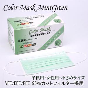 カラーマスク ミントグリーン 小さめサイズ 女性用 子供用 使い捨てマスク マスク