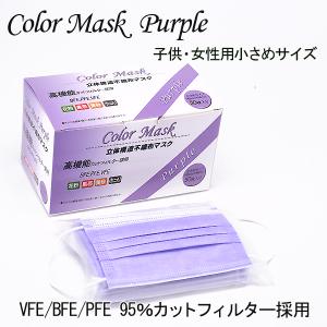 カラーマスク パープル 小さめサイズ 女性用 子供用 使い捨てマスク