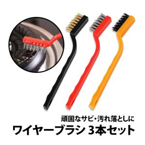 50%offクーポン有 ワイヤーブラシ 3本 セット キッチン コンロ 金属ブラシ サビ取り 錆落とし 目詰まり 清掃 掃除ブラシ ステンレス 水回り 洗浄 排水口