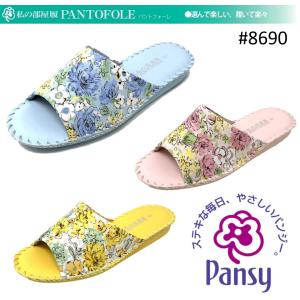スリッパ パンジー 婦人 レディース 8690 ルームシューズ 室内履き 軽量 合皮 滑りにくい クッション性 フローリング対応 手作り お手入れ簡単 ブルー イエロー