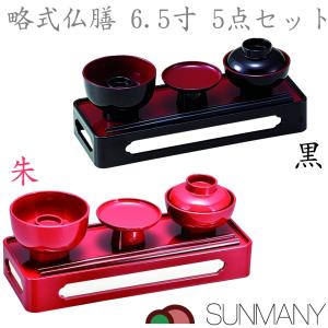 サンメニー 略式仏膳 6.5寸 黒(内朱)/朱 仏具セット お供え用 仏壇用 ミニテーブル ABS樹脂製 コンパクト 収納楽々 49日 法事用 供物台