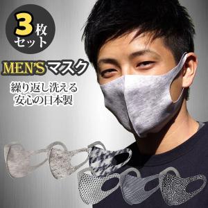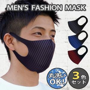 マスク 日本製 おしゃれ 洗える メンズ 男性 カーボン柄 3枚セット 水着素材 スポーツ ビジネス グレー 黒