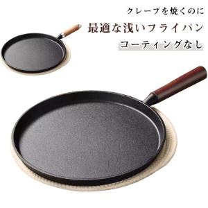 フライパン 浅い 取っ手付きフライパン 浅型 コーティングなし フレンチパン クレープ ガレット 薄焼き卵 軽量 IH対応 キッチンツール キッチン