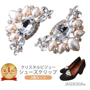 クリスタルビジュー シューズクリップ シューズチャーム 2個セット 靴 アクセサリー パール パーティー用 結婚式 ワンタッチ JM-249