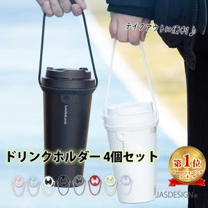 カップホルダー ドリンクホルダー シリコン製 4個セット 4色 コンビニコーヒー 持ち運び ドリンクバッグ タンブラーホルダー ストローホルダー付き JM-323