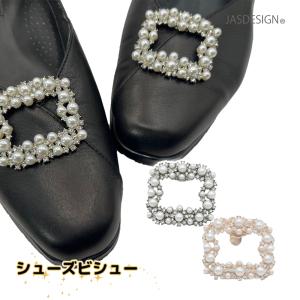 シューズクリップ ビジュークリップ パンプスクリップ シューズアクセサリー 靴クリップ 結婚式 ウェディング スクエア ビジュー パール ラインストーン JM-361