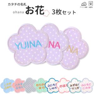カタチの名札 お花 3枚セット アイロン 名前シール ひらがな 漢字 ローマ字 カワイイ 入園 入学
