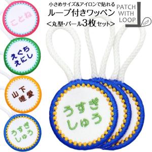 ループ付きワッペン 丸 パール お得な3枚セット アイロン ループ タオル 入園準備 幼稚園 刺繍 シンプル