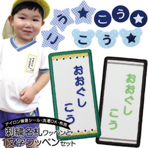 刺繍名札ワッペンと一文字ワッペンセット ワッペン 名前シール アイロン接着 名札 入園 準備