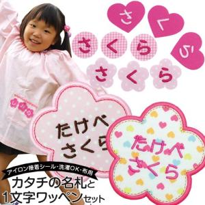 カタチの名札と一文字ワッペンセット ワッペン 名前シール アイロン接着 名札 入園 準備 ネームシール