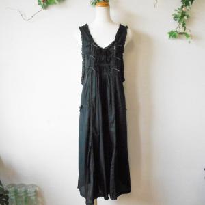 ピンクハウス PINKHOSE ピンタック & サテン リボン の 可愛い エプロン タブリエ 黒